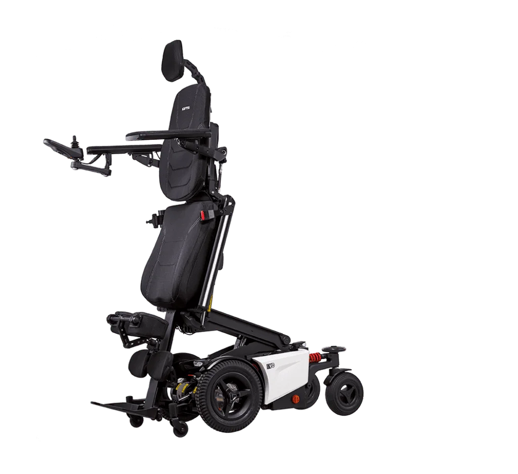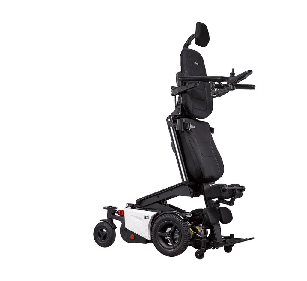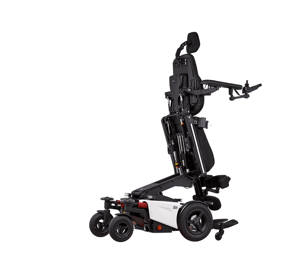 EVO Altus es una silla de ruedas eléctrica de bipedestación pensada para usuarios activos que buscan combinar movilidad y salud postural en un mismo equipo. Permite pasar de la posición sentada a la posición erguida de forma segura, facilitando tareas diarias, la interacción social a la altura de otras personas y favoreciendo la circulación. Su sistema de soporte y sus múltiples ajustes ayudan a mantener una postura estable y cómoda, convirtiéndola en una solución muy completa para quienes quieren ganar autonomía sin renunciar al cuidado de su cuerpo.